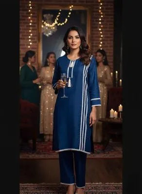 • Fabric: Cotton Lawn• Pattern: Lace Work• Trouser Fabric: Cotton Lawn• Product Feature: Perfect For Everyday Wear• Available Sizes: Standard Size• Number Of Pieces: 2 Pcs• Package Includes: 1 x Shirt, 1 x Trouser• Shirt Length: 37 Inches• Shirt Chest: 20 Inches• Trouser Length: 37 Inches• Trouser Waist: 34 Inches• Color: Blue• Note: There might be an error of 1-3 cm due to manual measurement, and slight color differences may occur as a result of varying lighting and monitor effects.• Product Code: MZ1119201781BYBR